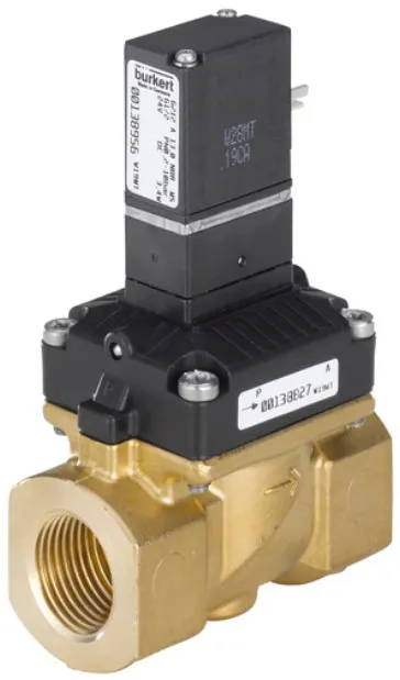 2/2-ходовой электромагнитный клапан с серводиафрагмой и 3-ходовым пилотным управлением с разделением среды. Доступен в схемах с функциями NC и NO. Разделение среды в управляющем клапане позволяет использовать клапан для слабоагрессивных сред. (например, деионизированная вода).