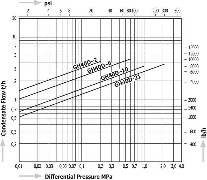 конденсата значительно ниже пропускной способности изделия, возможна утечка пара.